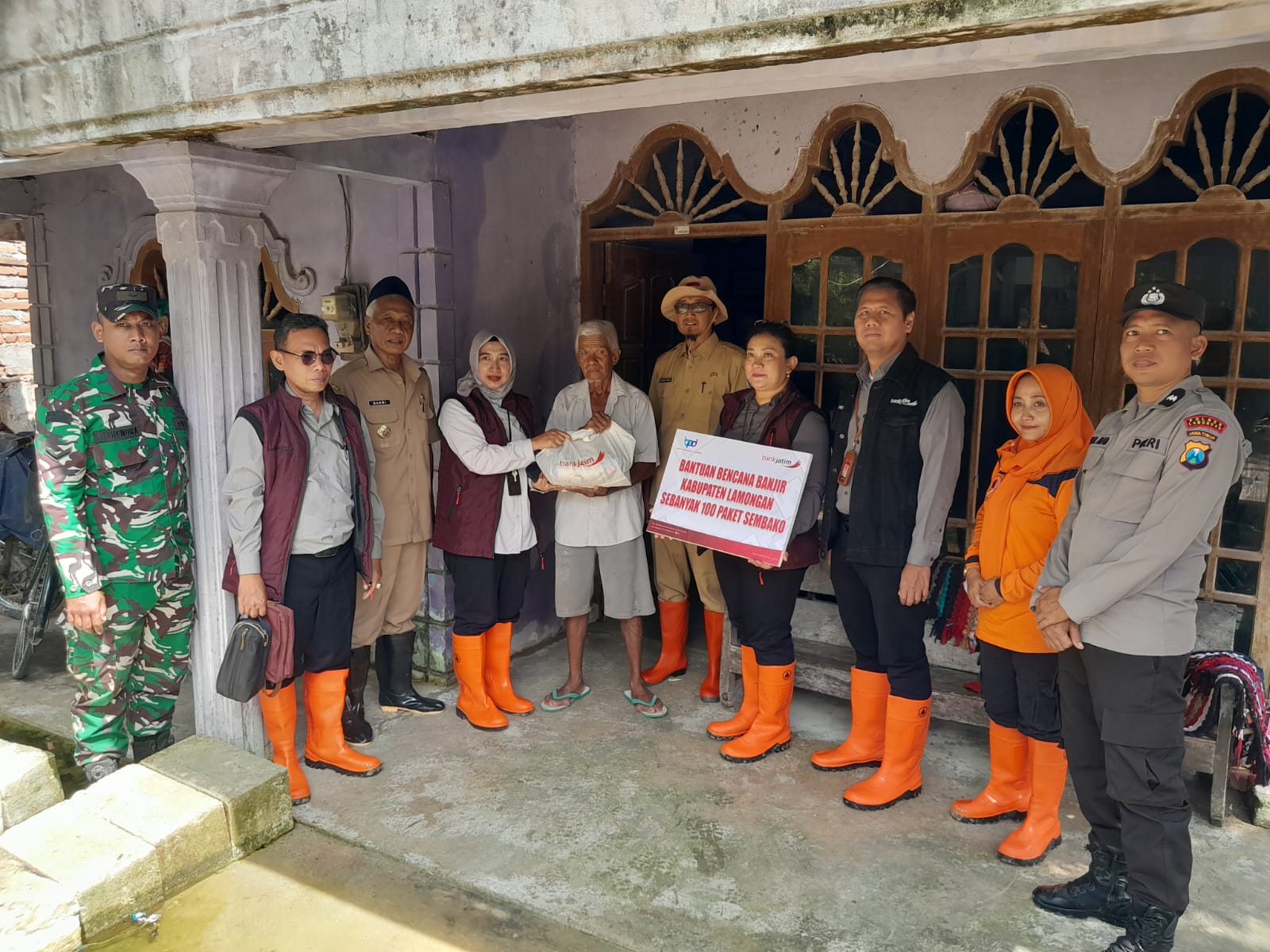 Bank Jatim Salurkan 100 paket sembako Bagi Warga Terdampak Banjir di Wilayah Turi Lamongan