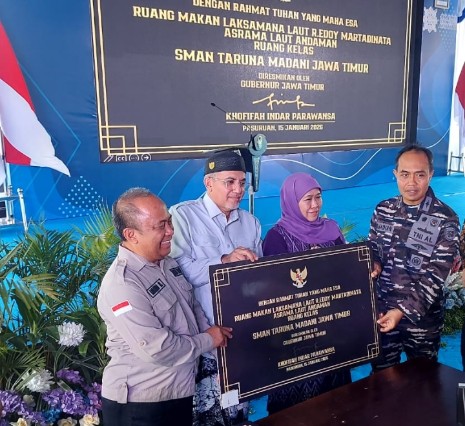 Merah Putih today – Gubernur Jawa Timur Khofifah Indar Parawansa meresmikan sarana prasarana, yakni ruang kelas baru (RKB), ruang makan, dan asrama SM