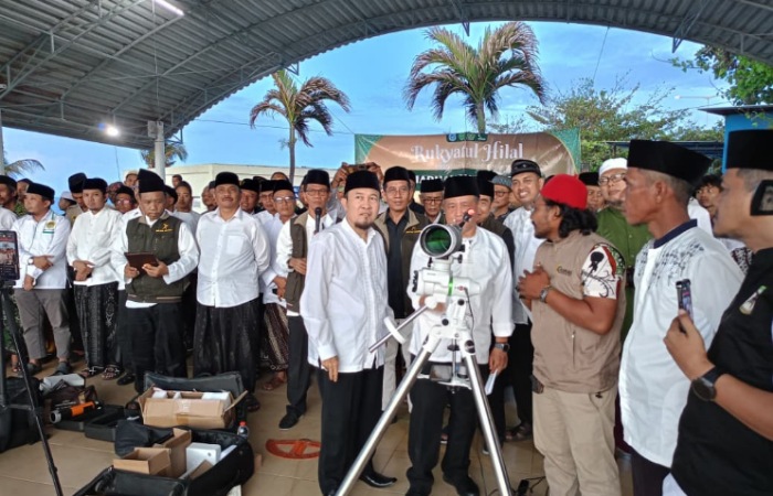 Merah Putih today – Pemantauan hilal yang dilakukan Badan Hisab dan Rukyat (BHR) Lamongan di Markaz Rukyatul Hilal Tanjung Kodok pada Selasa (17/2), menunjukkan bahwa hilal tidak terlihat dari Lamongan. Secara astronomis, tinggi hilal dilihat dari Tanjung Kodok berada pada minus satu derajat baik secara hakiki maupun mar’i dengan elongasi 01⁰ 05′ 24″ dan posisi hilal masih di bawah ufuk.