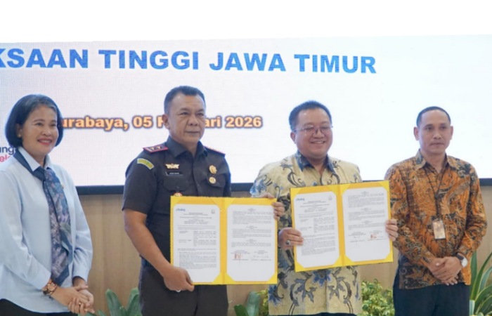 Merah Putih today – Dalam memperkuat ketahanan pangan daerah, Pemimpin Wilayah (Pimwil) Perum BULOG Kanwil Jatim melakukan Penandatanganan Nota Kesepahaman (MoU) bidang Perdata dan Tata Usaha Negara (Datun) dengan Kejaksaan tinggi Surabaya, upaya pendampingan hukum.