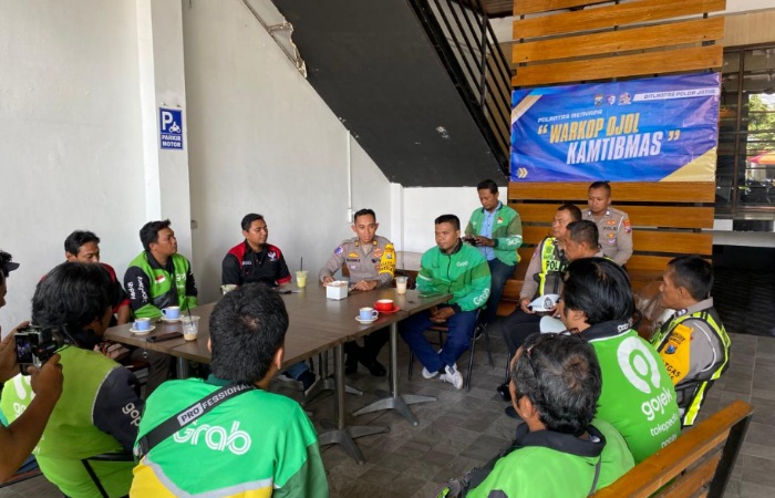 Merah Putih today – Upaya mempererat kemitraan dengan masyarakat sekaligus meningkatkan kesadaran tertib berlalu lintas, Satlantas Polres Lamongan menggelar kegiatan Polantas Menyapa Warkop Ojol Kamtibmas, bertempat di Warkop Aconk, Jl. Veteran Lamongan.